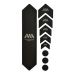 Im Lieferumfang sind 9 Teile für ein universelles Schutzsystem enthalten: 1 großes Teil für das Unterrohr; 5 Pfeilteile zur Erweiterung des Unterrohrschutzes oder für die Kettenstrebe oder für das Oberrohr; und 3 Kreise zum Schutz vor Kabelverschleiß.